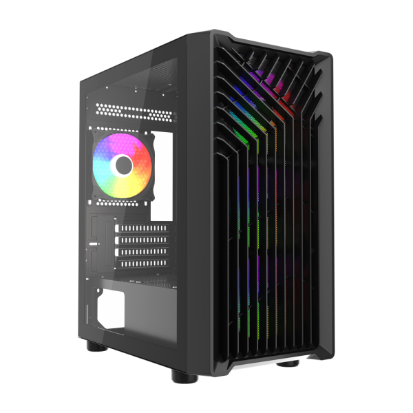 Lboîtier XTRMLAB LYNX v2 sera idéal pour votre configuration Gaming. Spacieux, il est compatible avec les cartes mères micro-ATX et Mini ITX et peu accueillir une carte graphique de 330 mm tout en proposant une ventilation optimisée et colorée grâce à un ventilateur ARGB 120 mm inclus à l’arrière.